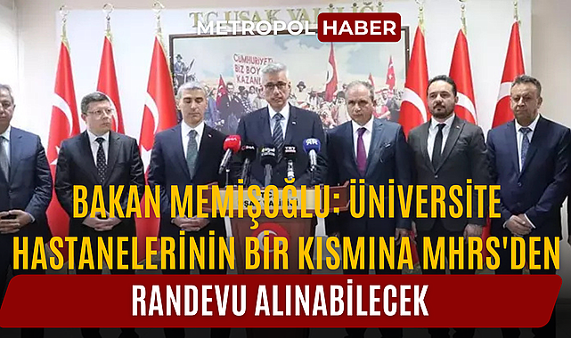 Sağlık Bakanı Kemal Memişoğlu, "Üniversite hastanelerinin bir kısmına Merkezi Hekim Randevu Sistemi (MHRS) üzerinden randevu alınabilecek. Aile hekimliği vasıtasıyla bunu pilot olarak Yozgat Bozok ve Pamukkale üniversitelerinde örnek olarak uygulamaya 1 Eylül'den itibaren başlıyoruz" dedi.