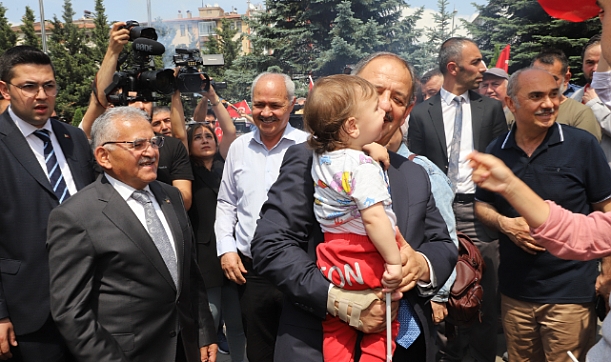 Başkanlık girişinde Çevre, Şehircilik ve İklim Değişikliği Bakanı Mehmet Özhaseki’yi çiçekler ve Türk bayrakları ile coşkulu bir şekilde karşılayan Başkan Büyükkılıç, daha sonra belediye bahçesinde bir süre vatandaşlarla ve belediye personeli ile sohbet etti.