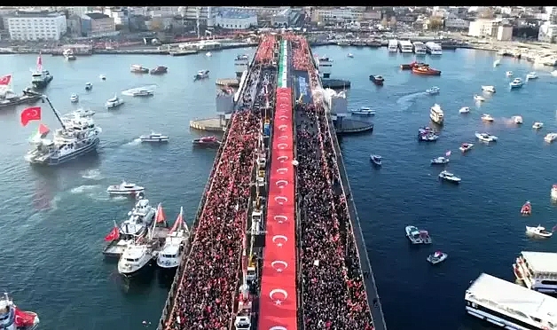 Türkiye Gençlik Vakfı (TÜGVA) öncülüğünde düzenlenen 'Büyük Gazze Yürüyüşü'ne katılanlar, başta Ayasofya-i Kebir Cami-i Şerifi olmak üzere Sultanahmet, Fatih, Süleymaniye ve Eminönü Yeni Cami'de sabah namazını kılmalarının ardından cami önlerinde bir araya gelerek kortej yaptı. Ellerinde Türk ve Filistin bayrakları olan ve Gazze'ye destek için kefiye takan katılımcılar tramvay yolunu takip ederek Yeni Camii ve Galata Köprüsüne ulaştı. Yürüyüşe Adalet Bakanı Yılmaz Tunç da katıldı. 'FİLİSTİN'DE BİR SOYKIRIM SUÇU İŞLENİYOR'Yürüyüş öncesi gazetecilere açıklamalarda bulunan Adalet Bakanı Yılmaz Tunç, "Galata Köprüsü'ndeyiz. Gördüğünüz gibi muhteşem bir kalabalık var. Geceden bu yana İstanbullular Galata Köprüsü'ne akın ettiler. Milli İrade Platformu'nun öncülüğünde bütün sivil toplum kuruluşları, spor kulüplerine varıncaya kadar herkes destek oldu ve bütün İstanbullular bugün Filistin'in sesi oluyorlar. İnsanlığın sesi oluyorlar, hukukun, uluslararası hukukun sesi oluyorlar. Maalesef Filistin'de 7 Ekim 2023'ten bu yana, 2 yılı aşkın süredir bir soykırım suçu işleniyor. Kadınlar katledildi, çocuklar katledildi. Maalesef çocuk haklarını savunanlar, kadın haklarını savunanlar, Batılı devletler mazlumun yanında değil de İsrail'in destekçisi oldular maalesef; bunu gördük. 70 binden fazla insan şehit edildi son 2 yılda. Bunun yüzde 50'den fazlası kadın ve çocuklardan oluşuyor. Dünyanın gözü önünde bir insanlık suçu işlendi" diye konuştu. 'ULUSLARARASI HUKUKU İHLAL EDEN BİR DEVLET VAR'Bakan Tunç, "Tabii barış anlaşmasından sonra da yine katliamlar devam etti. Maalesef bu son 2 yılın meselesi de değil, bir asrı aşan bir mesele. Dünyanın kanayan yarası. 1897'den, Birinci Siyonizm Kongresi'nden itibaren Filistin topraklarında bir İsrail devletinin kurulma düşüncesinden sonra süregelen işgal politikalarıyla beraber bugünlere geldik. Maalesef son yüzyılda Birleşmiş Milletler'in, Güvenlik Konseyi’nin aldığı kararlara uymayan bir devlet var. Uluslararası hukuku ihlal eden bir devlet var; yani karşımızda soykırım suçunu işleyen bir adeta bir örgüt var. Dolayısıyla Türkiye olarak bugüne kadar hep hakkın, hakkaniyetin, adaletin sesi olmaya çalıştık. Sayın Cumhurbaşkanımız her platformda 'Dünya beşten büyüktür' derken, 'Uluslararası sistem işlemiyor, insanlığın sorunlarına çare olamıyor' derken hep bugünlere işaret etti ve işaret etmeye de devam ediyor. Türk milleti olarak hep insanlığın vicdanı, insanlığın sesi olmaya çalışıyoruz. Oradaki insani yardımlarla Filistinli kardeşlerimizin yanında olmaya çalışıyoruz. Devlet olarak da, millet olarak da Filistinlilerin yanındayız" ifadelerini kullandı.'İŞLEMEYEN BİR SİSTEM VAR'Tunç, "Maalesef Uluslararası Adalet Divanı'nın aldığı tedbir kararları Birleşmiş Milletler (BM) Güvenlik Konseyi tarafından icra edilemedi, gündeme bile getirilemedi. Uluslararası Ceza Mahkemesi'nin soruşturması ilerletilemedi, hatta soruşturma yapan savcılar, yine Uluslararası Adalet Divanı'nın hakimleri hakkında maalesef yaptırım kararları alındı. İşlemeyen bir sistem var. Bu sistemin ilanihaye devam etmesi mümkün değil tabii ki. Uluslararası sistemin de bir revizyona tabi tutulması lazım. Filistin sorununun kalıcı çözümünün orada 1967 sınırlarında, İsrail'in 1967'de işgal ettiği topraklardan çekilerek bağımsız, özgür, başkenti Doğu Kudüs olan, toprak bütünlüğü olan bir özgür filistin devletinin kurulmasından geçiyor. Filistin devletini tanıyan ülke sayısı gittikçe çoğaldı bu zulümlerden sonra. İnsanlığın özellikle bu konuda meydanları doldurduğunu görüyoruz. Türkiye'de de bugün 2026'nın ilk dakikalarından itibaren dünyaya sesleniyoruz buradan. Artık bu zulümler sona ersin, uluslararası hukuka saygı duyulsun, uluslararası sistem hakkıyla işlesin. Türkiye olarak bütün temennimiz, beklentimiz bu" diyerek cümlelerini noktaladı.