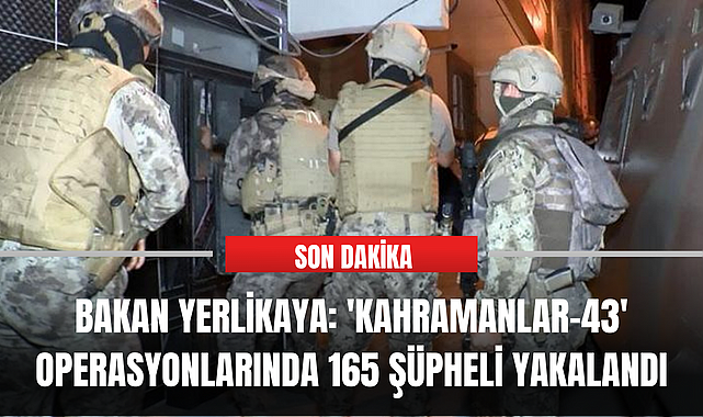 Bakan Yerlikaya: 'Kahramanlar-43' operasyonlarında 165 şüpheli yakalandı