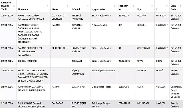 Mandıradan kasaba kadar Tarım ve Orman Bakanlığı denetimlerine devam ediyor. Gıdada uygunsuzluk yapan marka ve esnaf ise taklit-tağşiş listesinde yayımlanıyor. Bazen büyük markaların da girdiği liste dün bir kez daha güncellendi.