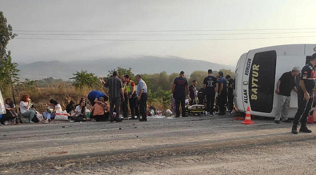 Balıkesir'de, düğünden dönenlerin içinde olduğu minibüs devrilirken, şoför Ahmet Güney'in de aralarında bulunduğu 3'ü ağır 17 kişi yaralandı.