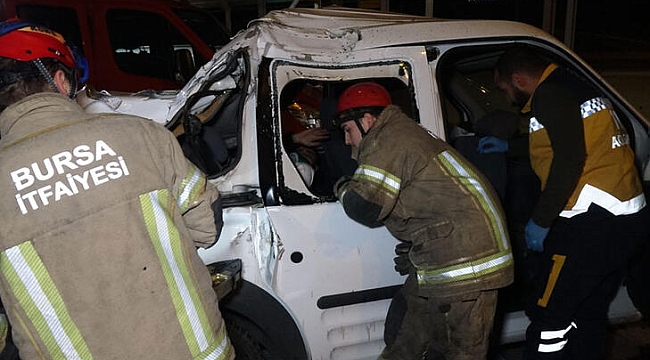Kaza, saat 04.00 sıralarında Yiğitler Mahallesi Ankara Yolu Caddesi'nde meydana geldi. Murat Ersoy'nun kontrolünden çıkan 16 ARF 379 plakalı hafif ticari araç, bariyerlere çarparak takla attı. Ersoy ile yanındaki Salih Çabuk, araçta sıkıştı. Ekipler, 2 kişiyi araçtan çıkarıp, Bursa Yüksek İhtisas Eğitim ve Araştırma Hastanesi'ne kaldırdı. Yaralıların durumunun ağır olduğu bildirildi. Kazaya ilişkin soruşturma başlatıldı.