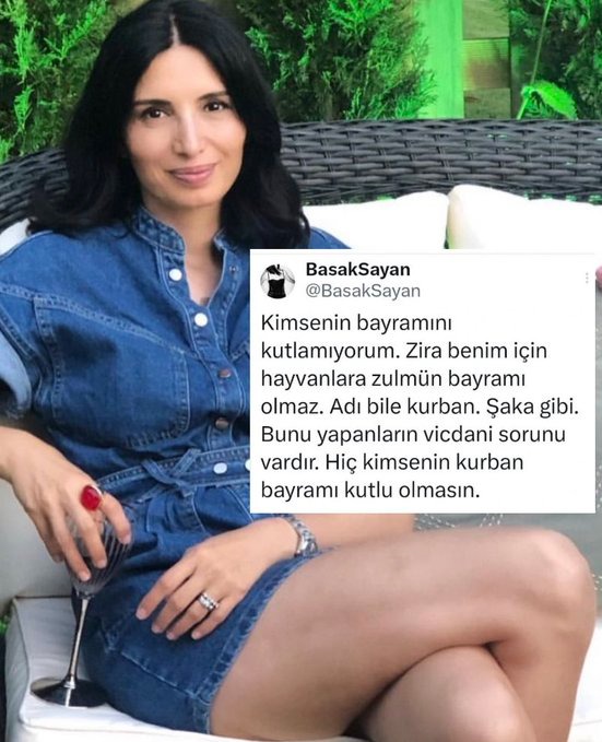 Başak Sayan’ın, Kurban Bayramı için yaptığı paylaşım sosyal medyada tartışma konusu oldu: “Hiç kimsenin Kurban Bayramı kutlu olmasın.”