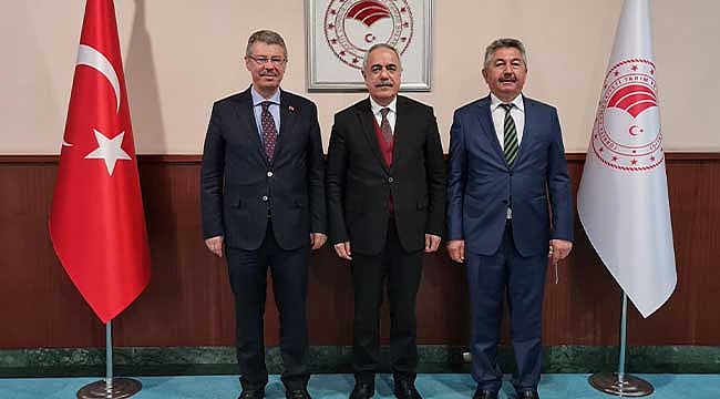 Kayseri Şeker Yönetim Kurulu Başkanı Hurşit Dede ile birlikte Bakan Yardımcısı Hadi Tunç’u makamında ziyaret eden Başkan Hüseyin Akay, pancar tarımı ve şeker sektörüne ilişkin bilgiler aktararak, çözüm önerileri üzerine görüş alışverişinde bulundu.