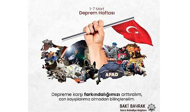Sarız Belediye Başkanı Baki Bayrak, 1-7 Mart Deprem Haftası dolayısıyla bir mesaj yayımladı.