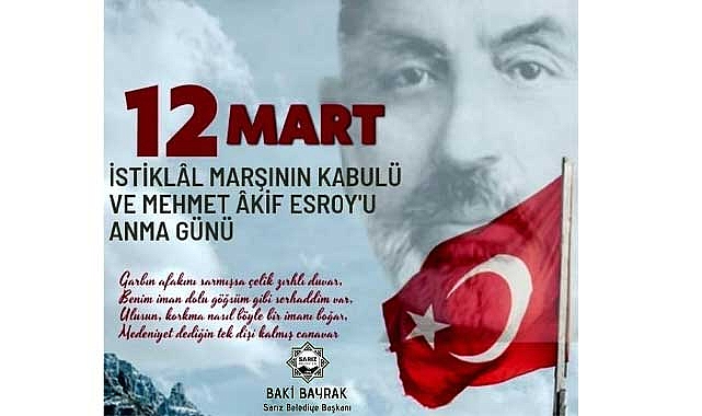 Sarız Belediye Başkanı Baki Bayrak, 12 Mart İstiklal Marşı’nın Kabulü ve Mehmet Akif Ersoy’u Anma Günü dolayısıyla bir mesaj yayımladı.