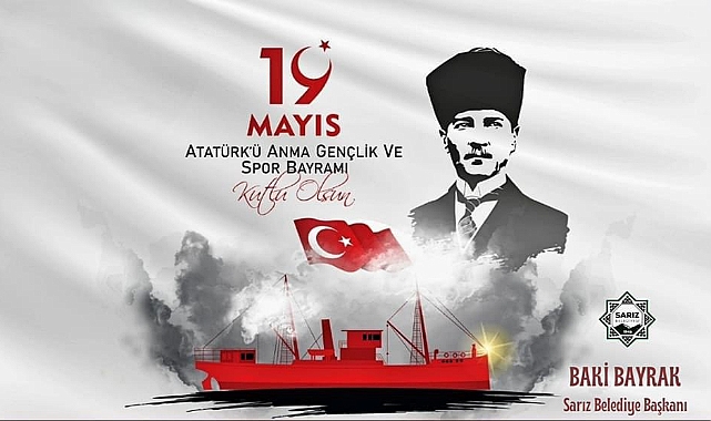 Sarız Belediye Başkanı Baki Bayrak, 19 Mayıs Atatürk’ü Anma, Gençlik ve Spor Bayramı’nın 104. yıldönümü dolayısıyla kutlama mesajı yayımladı.Başkan Bayrak :” 19 Mayıs 1919 tarihi, Türk Milleti'nin bağımsızlık ve özgürlük umutlarının inanca dönüştüğü, kurtuluş ateşinin yakıldığı ve aydınlık bir geleceğe olan inancın kuvvetlendiği günün adıdır. 19 Mayıs Atatürk'ü Anma Gençlik ve Spor Bayramımız kutlu olsun.” dedi.