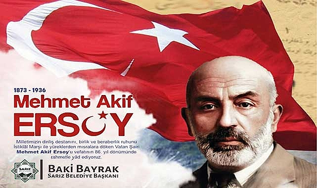 Sarız Belediye Başkanı Baki Bayrak, Mehmet Akif Ersoy'un vefatının 86. yıl dönümü dolayısıyla bir mesaj yayımladı.