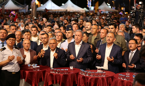 Çevre, Şehircilik ve İklim Değişikliği Bakanı Mehmet Özhaseki de şehitleri anmak için toplandıklarını belirterek, “Sizlerin hakkını ödeyemeyiz, sizlerle gurur duyuyoruz. Bugün burada şehitlerimizi anmak için toplandık. Gazilerimize afiyet dilemek için toplandık. Bir taraftan da irademize sahip çıktığımızı göstermek için toplandık. Bizleri hiç yalnız bırakmadınız, Allah sizlerden razı olsun” dedi.7 yıl önce devletin ve milletin büyük bir ihanete uğradığına vurgu yapan Bakan Özhaseki, “Böyle bir alçaklığı ve kalleşliği tarih boyunca hiç görmemiştik. Sivil insanlara kurşun sıktılar, milletin meclisini bombaladılar. Bu milletin uçaklarıyla bombalar attılar, millete kurşun sıktılar ama şükürler olsun ki başaramadılar. 15 Temmuz’da bizim bayrağımıza, ezanımıza, milletimize karşı yapılmış en büyük ihanetti bunu da hiçbir zaman unutmayacağız” diye konuştu.Özhaseki, 15 Temmuz destanının yazıldığı süreçte Genelkurmay Başkanı olarak görev yapan AK Parti Kayseri Milletvekili Hulusi Akar’a da o gece gösterdiği kahramanlıktan dolayı teşekkür ederek, kendisiyle iftihar ettiklerini söyledi.“MİLLETİMİZ TARİHİNE YARAŞIR ŞEKİLDE 15 TEMMUZ GECESİ BİR DESTAN YAZDI”
