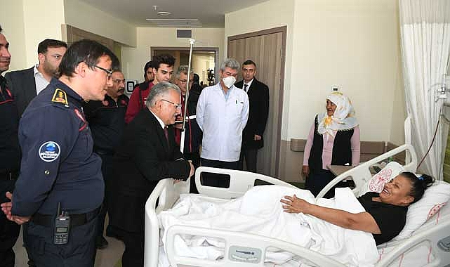 Kayseri Büyükşehir Belediye Başkanı Dr. Memduh Büyükkılıç, Kayseri Şehir Hastanesi’nde tedavi gören depremzede vatandaşları, kahraman itfaiyecilerle birlikte ziyaret ederek, geçmiş olsun dileklerini iletti.