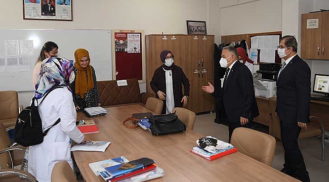 Taceddin Veli Kız Anadolu İmam Hatip Lisesi ve Taceddin Veli İmam Hatip Ortaokulu girişinde çiçeklerle karşılanan Başkan Büyükkılıç, ilk olarak öğretmenler odasında öğretmenler ile bir araya geldi. Öğretmenlere istek ve taleplerini soran Büyükkılıç, kolaylıklar diledi.