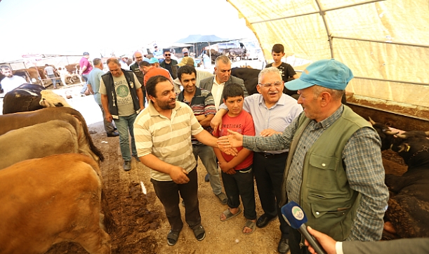 Kurban pazarında satış yapan esnaf ve kurbanlıklarını almak için pazarda bulunan vatandaşlarla sohbet eden Başkan Büyükkılıç, kurban pazarlarının vazgeçilmezlerinden biri olan sıkı pazarlık yapan vatandaşlar ile görüşüp, bir pazarlığın sonuçlanmasına katkıda bulunarak, alıcı ile satıcının memnuniyetine şahitlik etmenin mutluluğunu yaşadı.