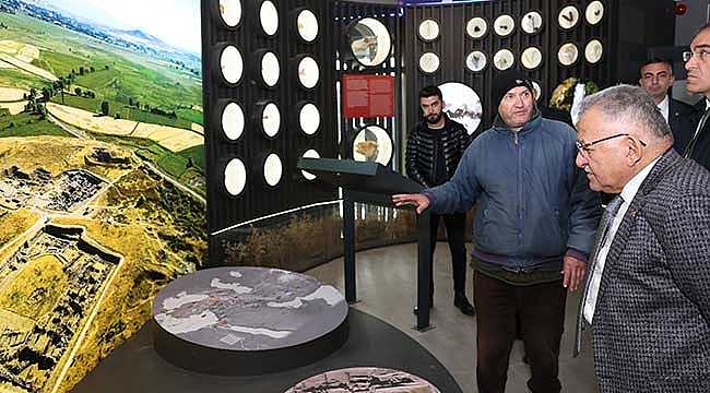 Kayseri Büyükşehir Belediye Başkanı Dr. Memduh Büyükkılıç, Anadolu'da en eski yazılı belgelerin keşfedildiği Kültepe Kaniş-Karum Höyüğü’nde, modern donanımlarla tasarlanan ve bölge hakkında bilgi vermek amacıyla hayata geçirilen Kültepe Ziyaretçi Merkezi’nde incelemelerde bulundu.