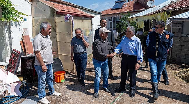 Kayseri Büyükşehir Belediye Başkanı Dr. Memduh Büyükkılıç, Sarıoğlan ilçesi Çiftlik Mahallesi’nde sağanak yağış nedeniyle meydana gelen sel baskını sonrası bölgede yapılan çalışmaları yerinde inceledi. Başkan Büyükkılıç, ilçe sakinlerine geçmiş olsun dileklerini iletirken, Sarıoğlan Belediye Başkanı Bekir Ayyıldırım da “Büyükşehir Belediye başkanımızın sayesinde yaraları sarmaya başladık” dedi.