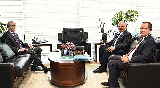 Kayseri Büyükşehir Belediye Başkanı Dr. Memduh Büyükkılıç, Ankara’da Devlet Su İşleri (DSİ) Genel Müdürü Kaya Yıldız ve DSİ Strateji Geliştirme Daire Başkanı Halis Bostan ile bir araya gelerek, Kayseri’de yapılacak yatırımlar ile ilgili görüştü.