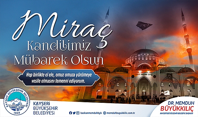 “Peygamber Efendimiz Hz. Muhammed’in (S.A.V.) Miraç mucizesinin gerçekleştiği bu mübarek gecede, üç ayların içerisinde, tövbe kapıları sonuna kadar açık. Dualarımızı bol bol edeceğiz. Müminlere namaz hediye edilen Miraç gecesinde namazımızı kılacağız. Miraç Kandili’nin gündüzü ve gecesini bu şuurla dolu dolu geçirerek, manevi dünyamızı aydınlatacağız. Miraç Kandili, içerisinde büyük hikmetler biriktiren, mucizelerle dolu bir zaman dilimi. Hassas dönemlerden geçtiğimiz ve mucizelere tanıklık ettiğimiz şu günleri Rabbim, Miraç hürmetine, daha kolay atlatmamızı nasip eylesin. Bu vesileyle başta Kayserili hemşehrilerimizin ve tüm İslam âleminin Miraç Kandili’ni kutluyor, kandilin bütün insanlığa huzur ve mutluluk getirmesi, ülkemiz ve milletimiz için hayırlara vesile olmasını temenni ediyorum.”