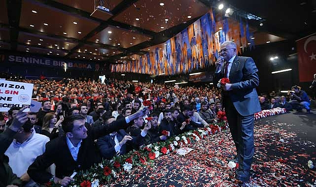 Üzüm konuşmasının sonunda, “Kayseri sizin ağabeyliğinizde, nasıl ki tüm ilçelere hizmet gittiyse, nasıl ilçeler kalkındıysa, burada 16 belediye başkanımız ve sizin önderliğinizde teşkilatla birlikte Kayseri, yepyeni yıldızlarla dolu bir 5 yıl daha yaşayacak” diye konuştu.