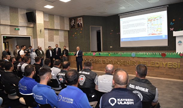 Kayseri Büyükşehir Belediye Başkanı Dr. Memduh Büyükkılıç, Büyükşehir Belediyesi Ulaşım A.Ş. tarafından şoför, makinist, parkomat, güvenlik görevlisi, peron görevlisi ve gişe görevlilerine yönelik düzenlenen eğitim seminerine katılarak, personelle bir araya geldi.