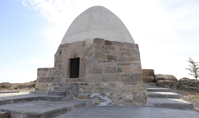 Büyükkılıç, türbe yapıyla ilgili de bilgiler vererek, “Türbe mimari yapısı, kütle olarak kubbeye kadar iki kademede yükselen, birinci kademede kareye yakın bir şemadan ikinci kademede sekizgene geçilen yapının üst örtüsü kubbeyle sonlanıyor. Herhangi bir kitabesi bulunmayan türbe yapının 13’üncü yüzyılda inşa edildiği tahmin ediliyor” şeklinde konuştu.