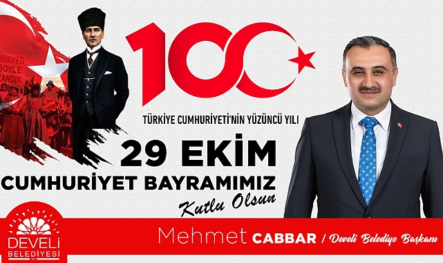 Develi Belediye Başkan Cabbar, sosyal medya hesabından yayımladığı mesaj ile Cumhuriyetimizin kuruluşunun 100. yıldönümünü kutladı. Başkan Cabbar mesajında:” Gazi Mustafa Kemal Atatürk'ün önderliğinde yazılan kurtuluş destanının gururunu, heyecanını ve bu destanın varış noktası olan Cumhuriyetimizin ilanının 100. yıldönümünü kutluyor; bu destanı yazan ve bizlere emanet eden aziz şehitlerimizi ve kahraman gazilerimizi bir kez daha rahmet ve şükranla anıyorum. Nice 100 yıllara...29 Ekim Cumhuriyet Bayramımız kutlu olsun. “ dedi.
