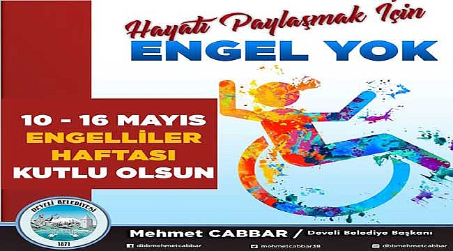 Develi Belediye Başkanı Mehmet Cabbar, 10 -16 Mayıs Engelliler Haftası kapsamında br memsaj yayımladı.
