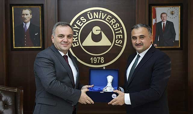 Develi Belediye Başkanı Mehmet Cabbar, İlçe Kaymakamı Mehmet Tunç ile birlikte Erciyes Üniversitesi Rektörü Prof. Dr. Fatih Altun'a hayırlı olsun ziyaretinde bulundu.