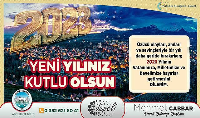 Başkan Cabbar mesajında, “Üzücü olayları, anıları ve sevinçleriyle bir yılı daha geride bırakırken; 2023 yılının vatanımıza, milletimize ve Develimize hayırlar getirmesini dilerim” ifadelerini kullandı.