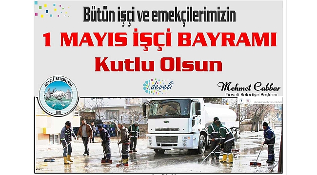 Develi Belediye Başkanı Mehmet Cabbar 1 Mayıs Emek ve Dayanışma Günü dolayısıyla bir mesaj yayımladı. Başkan Cabbbar mesajında:" Ülkemizin büyümesine, gelişmesine, kalkınmasına en büyük katkıyı sağlayanlar, hiç şüphesiz çalışan, üreten, işçi ve emekçi kardeşlerimizdir. Emeğiyle, alın teriyle, üretimiyle ülkemize değer katan çalışanlarımızın 1 Mayıs Emek ve Dayanışma Günü’nü tebrik ediyor; bu güzel ve anlamlı günün ülkemizde kardeşliğin, huzurun, barışın ve dayanışmanın simgesi olmasını temenni ediyorum. " dedi.