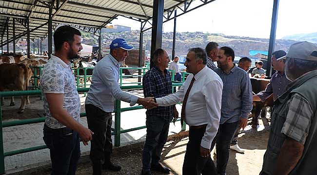 Kurban Bayramı'nın Develi’de her yönüyle sorunsuz yaşanması için çalışmalarının tamamladığını belirten Develi Belediye Başkanı Mehmet Cabbar, “Canlı Hayvan Pazarının üzerinin kapatılmasıyla ilgili çalışmamızı geçen sene tamamlamıştık. Pazarımızın üzerine konulacak güneş panelleri ile de kendi enerji ihtiyacını karşılaya bilecek duruma gelecektir. Kurban Bayramımıza sayılı günler kaldı. Bugünde pazarımızı ziyaret ederek hemşerilerimize hayırlı işler diledik. Bu bayramda keseceğimiz kurbanların Rabbimiz katında kabul edilmesi duasıyla tüm hemşerilerime şimdiden hayırlı bayramlar diliyorum” dedi.