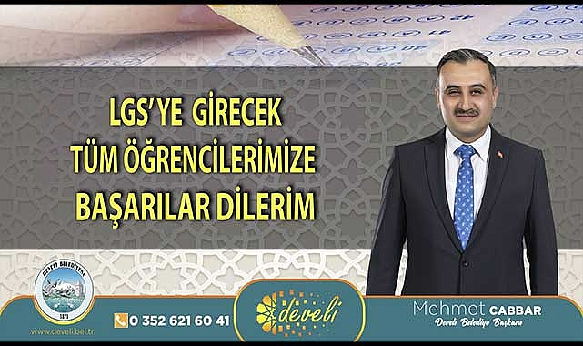 Develi Belediye Başkanı Mehmet Cabbar, yarın Liselere Geçiş Sistemi (LGS) sınavına girecek öğrencilere başarılar diledi.