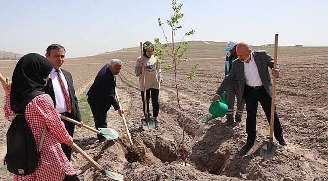 Konuşmaların ardından öğrencilerle birlikte fidanları torakla buluşturan Başkan Çolakbayrakdar, dikilen ilk fidanlarında can suyunu verdi.