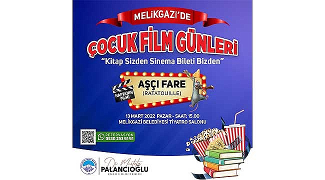 Çocukların gönüllerince eğlenmeleri ve sosyalleşmeleri için “Çocuk Filmi Günleri” düzenlediklerini söyleyen Başkan Dr. Palancıoğlu, “Çocuklarımızın, sosyal, kültürel, sportif ve birçok alanda gelişim göstermesi, kendisini geliştirmesi ve daha sosyal bir kişiliğe kavuşması amacıyla inşallah daha çok buna benzer projemiz var. Gelecek öğrencilerimizin ellerinde şekillenecek. Bu nedenle eğitime ve gençlere yapılan yatırımlar, farklı ve eğlenceli etkinlikleri önemsiyoruz. Çocuklarımız bizler için her zaman önemli bir yerde bulunuyor. ‘Kitap Sizden Sinema Bileti Bizden’ kampanyamız ile kitaplarınızı bağışlayarak sinema biletinizi alabilirsiniz. Çocuk Filmi Günleri’miz ile eğlence dolu bir gün sizleri bekliyor. Aşçı Fare (Ratatouille) 13 Mart Pazar günü saat 15:00’te Melikgazi Belediyesi Tiyatro Salonu'nda düzenlenecek. Çocuklarımıza pamuk şeker ve patlamış mısırda ikram edeceğiz. 27 Mart Pazar günüde Kayıp Balık Nemo filmini çocuklarımızla buluşturacağız. Film izlemek isteyen tüm çocuklarımızı bekleriz.” dedi.