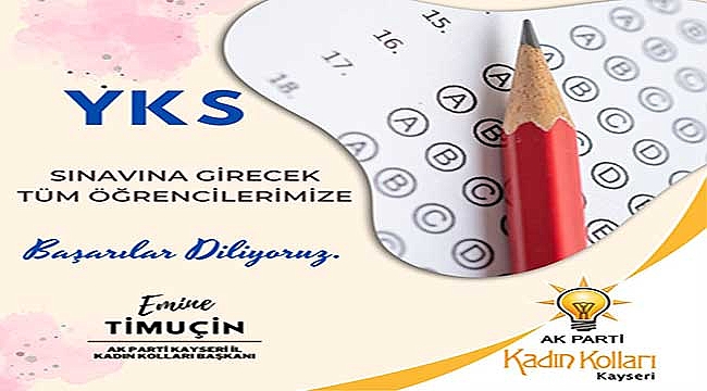 AK Parti İl Kadın Kolları Başkanı Emine Timuçin, hafta sonu Yükseköğretim Kurumları Sınavı’na , (YKS) gireceklere başarılar diledi.