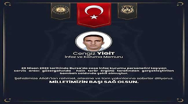 İncesu Belediye Başkanı Av. Mustafa İlmek, Bursa'da meydana gelen saldırı sonucu hayatını kaybeden infaz koruma memuru için bir mesajı yayınladı.