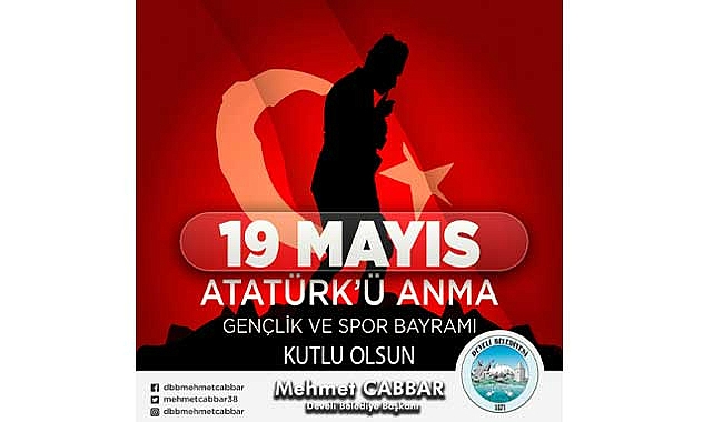 Develi Belediye Başkanı Mehmet Cabbar, 19 Mayıs Atatürk’ü Anma, Gençlik ve Spor Bayramı’nın 104. yıl dönümü dolayısıyla kutlama mesajı yayımladı.
