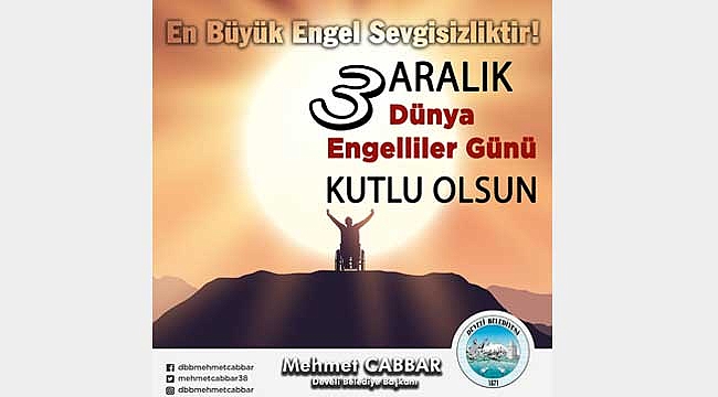 Develi Belediye Başkanı Mehmet Cabbar, 3 Aralık Dünya Engelliler Günü dolayısıyla mesaj yayımladı.