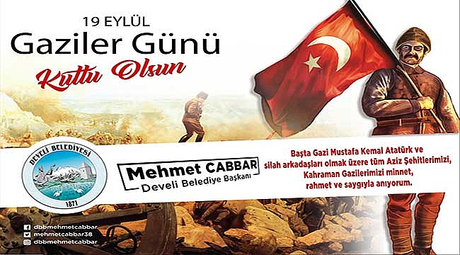 Develi Belediye Başkanı Mehmet Cabbar, 19 eylül gaziler günü dolayısıyla bir mesaj yayımladı.