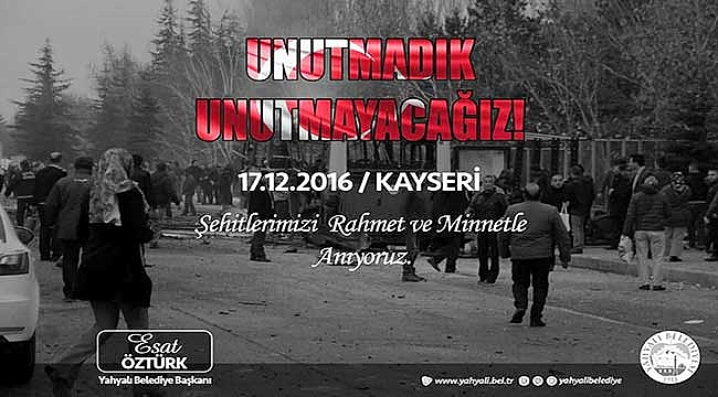 Yahyalı Belediye Başkanı Esat Öztürk, 6 yıl önce Kayseri’de yaşanan hain terör saldırısında şehadete eren kahraman askerlerimizi rahmetle ve minnetle andı.