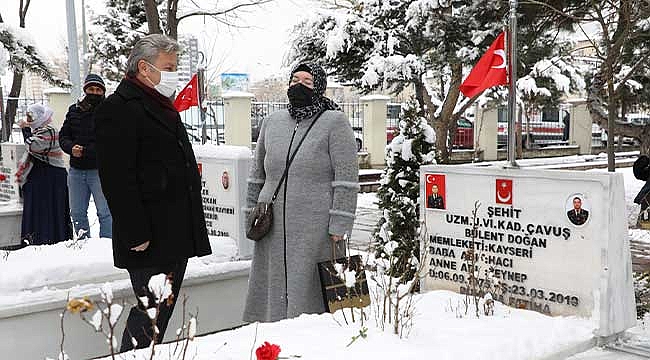 Melikgazi Belediye Başkanı Dr. Mustafa Palancıoğlu, 18 Mart Çanakkale Zaferi ve Şehitlerini Anma Günü dolayısıyla şehitlik ziyareti yaparak, şehit aileleri ile yakından ilgilendi.
