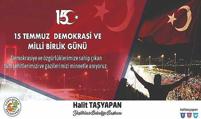 Yeşilhisar Belediye Başkan Halit Taşyapan, 15 Temmuz Demokrasi ve Milli Birlik Günü nedeniyle bir mesaj yayımladı.