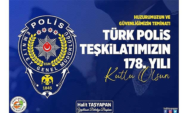 Başkan Halit Taşyapan, sosyal medya hesabından yaptığı paylaşımda, “Huzur ve Güvenliğimizin teminatı, Türk Polis Teşkilatımızın 178. Kuruluş Yılı Kutlu olsun. Gece gündüz demeden halkın huzuru ve güvenliği için çalışan, fedakârca görevlerinin başında bulunan polislerimize sağlık, mutluluk ve başarılar diliyorum” ifadelerini kullandı.
