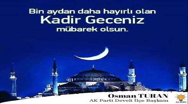 Başkan Turan yayımladığı mesajında: " Kadir gecesi bin aydan hayırlıdır. [Kadir Süresi/3]