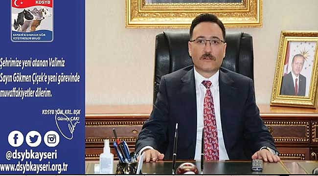 Kayseri İli Damızlık Sığır Yetiştiriciliği Birliği Yönetim Kurulu Başkanı Günay Çakı, Kayseri'ye Vali olarak atanan Gökmen Çiçek’e tebrik ederek başarılar diledi. Başkan Çakı sosyal medya hesabından paylaştığı mesajında:" Şehrimize yeni atanan valimiz Sayın Gökmen Çiçek yeni görevinde muvaffakiyetler dilerim." dedi.