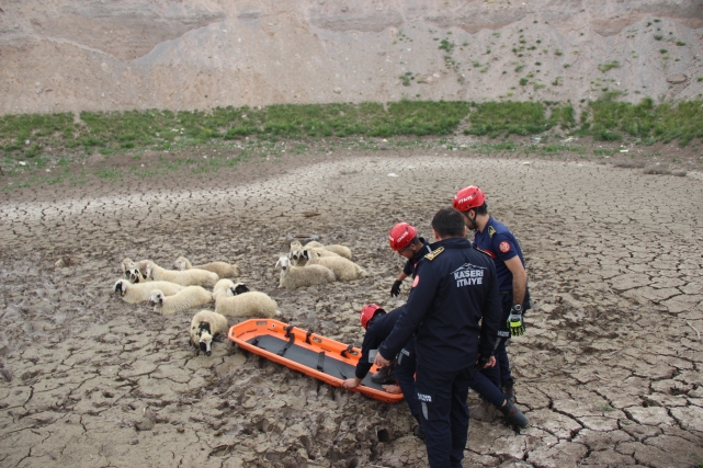 Kayseri Büyükşehir Belediyesi İtfaiye Daire Başkanlığı ekipleri, Kocasinan ilçesinde otlandıkları sırada bataklığa saplanan 30 koyunu, 2 saat süren başarılı operasyon ile kurtardı.