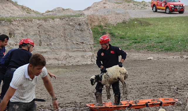 Bataklıkta mahsur kalan 30 koyun, itfaiye ekipleri tarafından 2 saatlik operasyon ile kurtarılarak hayvan sahibi Emre Yılmaz’a teslim edildi.