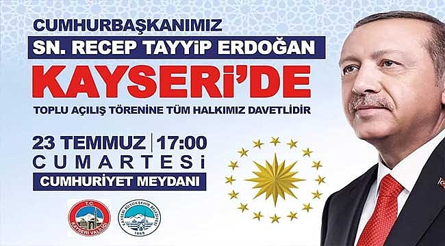 23 temmuz cumartesi günü Cumhurbaşkanı Recep Tayyip Erdoğan Cumhuriyet Meydanı'nda saat 17:00'de Kayserililerle buluşuyor. İncesu Belediyesi, Cumhurbaşkanı Erdoğan'ın mitingine katılmak isteyenler için saat 16:00'da otobüs kaldıracak.