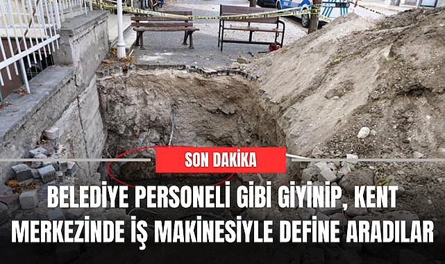 Belediye personeli gibi giyinip, kent merkezinde iş makinesiyle define aradılar