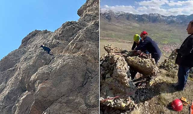 Uçurumda mahsur kalan keçi, itfaiye ekipleri tarafından 2 saatlik çalışma ile kurtarılarak hayvan sahibi Aşır’a teslim edildi.