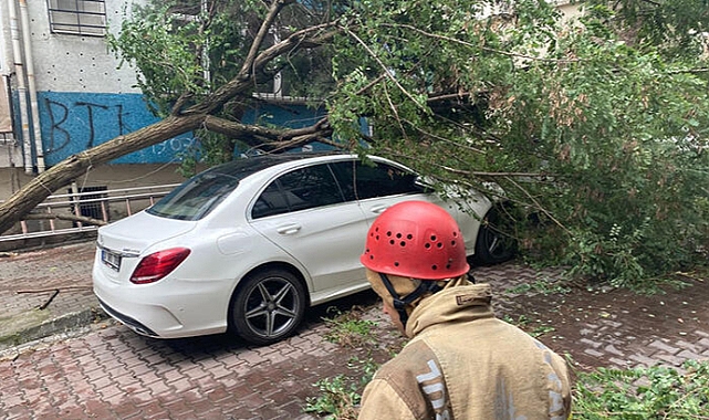 Beşiktaş'ta sağanak yağışın ardından bir ağaç otomobilin üzerine devrildi. Araçta hasar meydana gelirken, can kaybı ya da yaralanma olmadı.